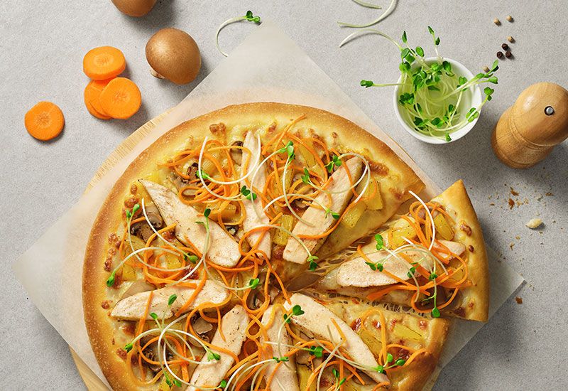 Tầng trên là lớp phô mai vàng óng thơm dẻo như mời gọi, tầng dưới là lớp sốt cà chua trung hòa với vị béo của phô mai Mozarella giúp chiếc p...